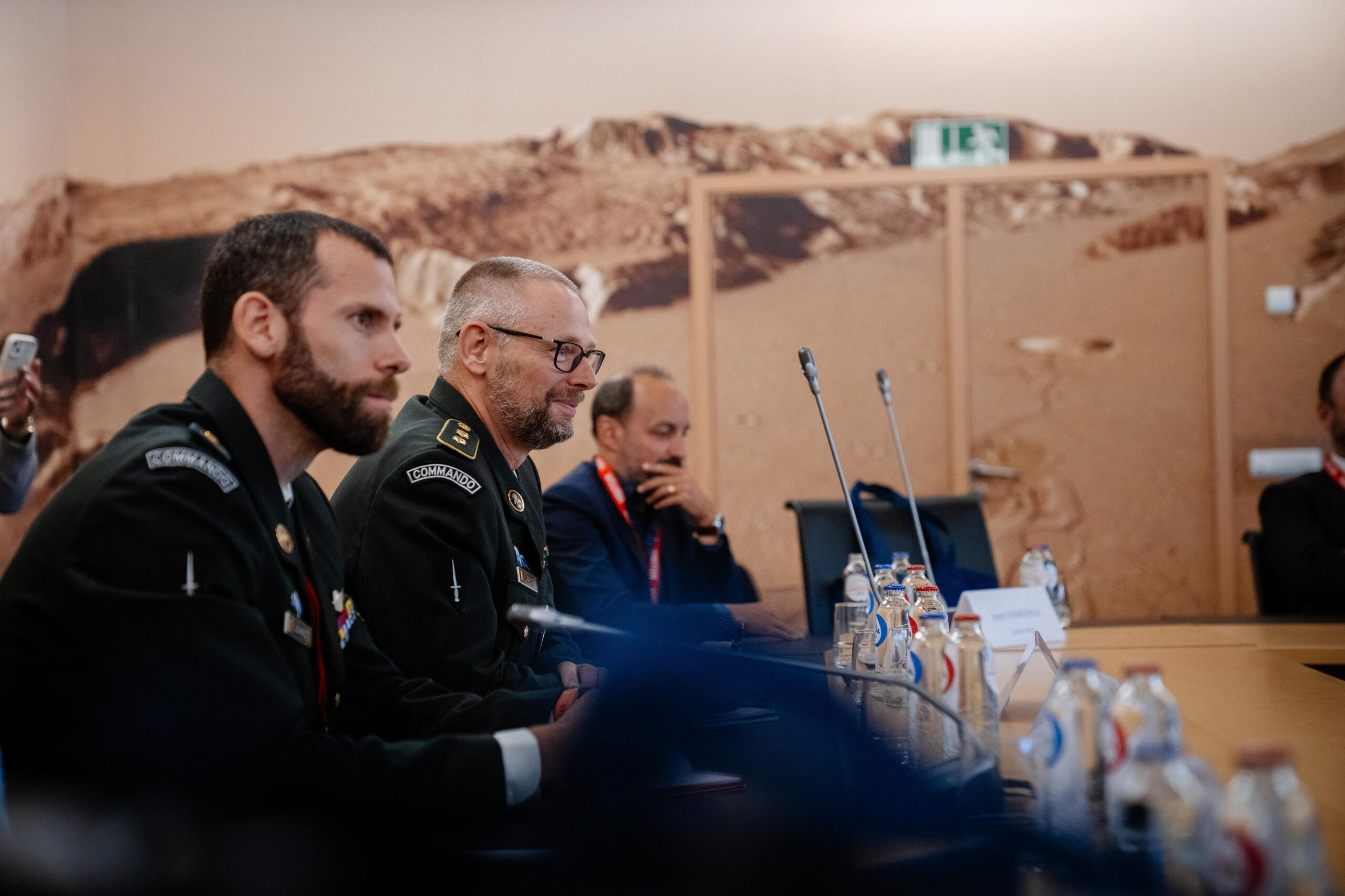 Samen met Vanessa Matz, de minister belast met BELSPO, ondernemingen en openbaar ambt, vertrok hij vervolgens snel naar het ESEC, het Europees centrum voor ruimtevaartveiligheid en -opleiding van de ESA. De ministers en generaal-majoor Pierre Ciparisse, de toekomstige commandant van de Cyber Force, werden verwelkomd door de heer Josef Aschbacher, directeur-generaal van de ESA. Tijdens zijn presentatie legt hij uit: “De ruimtevaart is een domein met tal van dubbele toepassingen, zowel civiele als militaire. Denk bijvoorbeeld aan de studie van meteorologische verschijnselen in het kader van de klimaatverandering of de toegang tot bepaalde inlichtingen voor Defensie.”